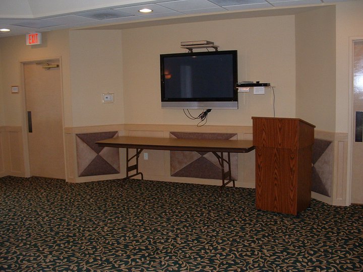 - Lecture equipment. Coat closet. Area for DJ setup.